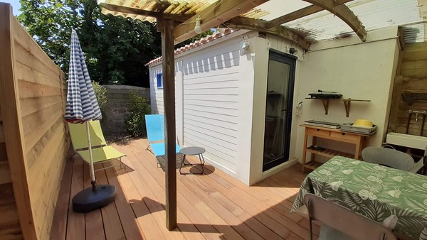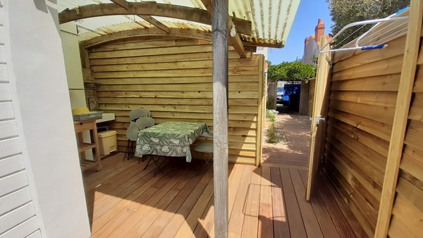 Petite maisonnette indépendante de 15 m2 pour 2 personnes, avec cuisine d’été sur une terrasse extérieure. Idéal pour une escapade en couple au bord de la mer.