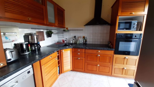 Une cuisine tout équipée, une salle de bain familiale avec baignoire et douche, un WC séparé, un dressing, et une buanderie avec lave-linge et sèche-linge complètent la maison.