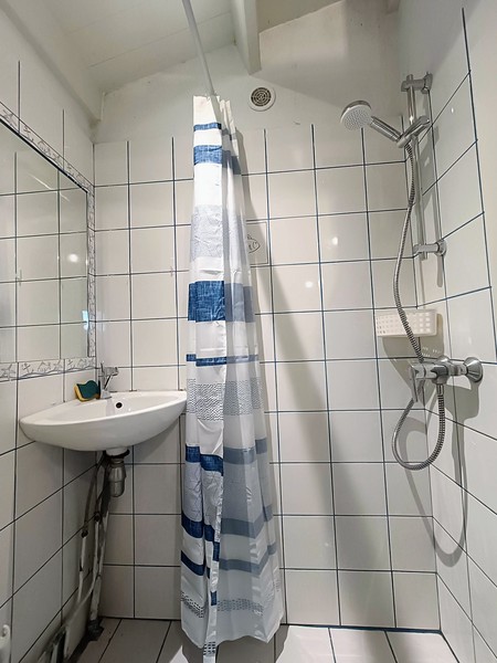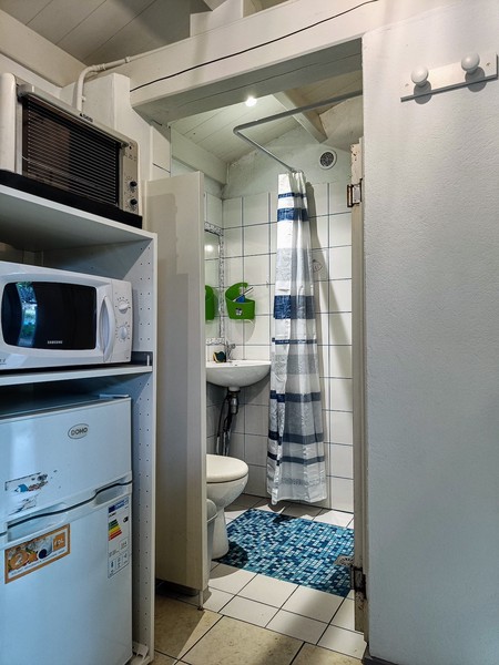 Elle est composée d’une pièce à vivre avec lit double (140x200), coin repas, TV, rangements, et d’une petite salle de douche avec WC.