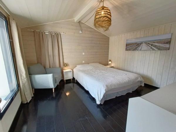 Quatre chambres sont réparties autour de la pièce principale, dont deux chambres avec lit double (l’une d’elles incluant une salle de douche et un WC) et deux chambres avec lits jumeaux ou superposés. Chacune dispose de rangements.