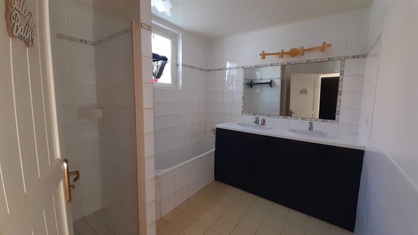 Une cuisine tout équipée, une salle de bain familiale avec baignoire et douche, un WC séparé, un dressing, et une buanderie avec lave-linge et sèche-linge complètent la maison.